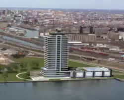 Queen City Landing was an approved residential tower proposal by developer Gerald Buchheit on the Outer Harbor of Buffalo, New York. Preparation work included the demolition of a 6-story warehouse formerly operated by Freezer Queen Foods and the project was planned to have approximately 200 apartment units.[1] Upon completion, it would have been the 6th-tallest building in Buffalo and the 13th-tallest in Upstate New York, with a height of 324 feet and 23 floors.