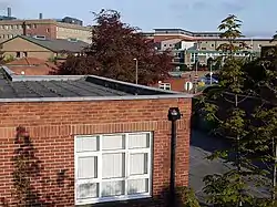 During the period 1918 to 1939, the isolation hospital remained the sole medical provision in Sheriff Hill.[6] Faced with an increase in population, Gateshead Council decided that a new general hospital should be built. In March 1938, preliminary work started on the Queen Elizabeth Hospital on the site of the isolation hospital;[7] the foundations were laid in 1939 but the outbreak of the Second World War delayed the building work. After the war the building work started again and the new buildings were officially opened by the Queen Mother on 18 March 1948.[8][9]