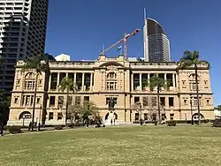 Queens Gardens is a public park, square in plan, that is bounded by William, Elizabeth and George Streets on the southwestern, northwestern and northeastern sides and by the Lands Administration Building (now Heritage Hotel) on the southeastern edge. Located around the perimeter of the Gardens are a number of important government buildings including the Lands Administration Building, the Treasury Building (now the Treasury Casino), the Old State Library and the Family Services Building.[1]