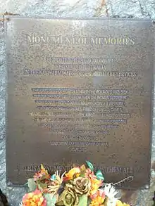 A recent addition to the park's memorials is a rough hewn block of bluestone with a bronze plaque bolted to it that commemorates the service of Australian women in war. It is located on the southwestern side of the asphalt area between rose beds.[1]