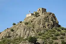 The Quermançó Castle is located about 2 km north of Vilajuïga, Spain, situated on top of a remote hill and directly accessible only on foot from a small road that turns off the N-260.