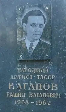 Räşit Wahap ulı Wahapov (Рәшит Ваһап улы Ваһапов, Russian: Раши́д Вага́пович Вага́пов, romanized: Rashid Vagapovich Vagapov; 1908–1962) was a Tatar singer (tenor), awarded with People's Artist of TASSR (1957). Wahapov was "one of the most actively and successfully performing Tatar singers in 1940s and enjoyed enormous popularity among a wide listening audience". In Kazan, capital of Tatarstan, a street is named after the singer.[1]