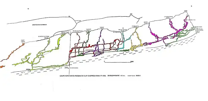 - ↑ Gilbert Bohec (1996). "Le réseau du Clot d'Aspres" (PDF). spelunca (in French). Fédération française de spéléologie. pp. 13–22. ISSN 0249-0544. Retrieved 2023-09-11.