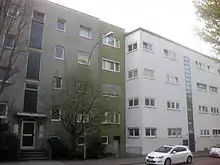 In line with the Garden City movement, May's program required the greater part of the population to live in a series of new decentralized satellite cities, clustered around Frankfurt, to which they would be connected with high-speed roads and public transit. In all, 14 new settlements were built, housing about 60,000 people.[3] One of the better-known of the satellite towns was Römerstadt.