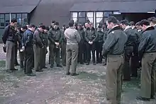 Captain Wilbur C. Ziegler, station Chaplain, leads pilots of the 359th Fighter Group in prayer at East Wretham.