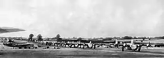 Consolidated B-24 Liberators of the 491st Bomb Group lining up for takeoff