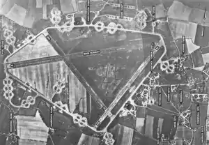 Wormingford was originally earmarked for an Eighth Heavy Bomb Group, being built by Richard Costain Ltd. and helped by a number of sub-contractors during the period 1942/1943. The airfield had a 2,000-yard main runway on an E-W axis and two intersecting runways of 1,400 yards each along with the USAAF standard fifty hardstands, two T2 hangars, one each side of the airfield, Mark II lighting and temporary building accommodation for 2,900 personnel. The technical area was on the southern side of the airfield and the camp sites dispersed to the south and east in and around the village of Fordham.[1]