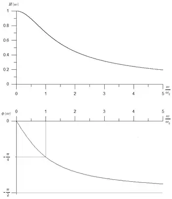 Amplitude and phase transfer functions for a series RC circuit