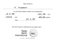 Radio Berlin International was the international broadcasting arm for the German Democratic Republic's (GDR) Rundfunk der DDR (Radio of the GDR) broadcasting service. Radio Berlin International (RBI) was one of the major international broadcasters of the Cold War era.
