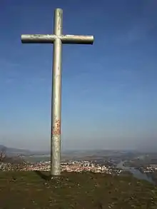 Cross on the summit, Litoměřice and Elbe River in the background.