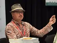 Rafael López (born August 8, 1961, in Mexico City, Mexico)[1] is an internationally recognized illustrator[2] and artist.[3] To reflect the lives of all young people, his illustrations bring diverse characters to children's books.[4] As a children's book illustrator, he has received three Pura Belpré Award medals from the Association for Library Service to Children (ALSC), a division of the American Library Association (ALA), and REFORMA in 2020 for Dancing Hands: How Teresa Carreño Played the Piano for President Lincoln,[5] Drum Dream Girl in 2016 and Book Fiesta! in 2010.[6] He created the National Book Festival Poster[7] for the Library of Congress and was a featured book festival speaker at this event.[8]