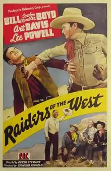 Raiders of the West is a 1942 American Western film directed by Sam Newfield and written by Oliver Drake. The film stars Bill Boyd, Art Davis, Lee Powell, Virginia Carroll, Charles King and Glenn Strange. The film was released on February 20, 1942, by Producers Releasing Corporation.[1][2][3]