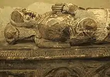Raimondo died in October 1334. He received a lavish funeral and was buried in the complex of Santa Chiara, the resting place of the Angevin kings.[4] His monumental sepulchre is topped by his effigy in the figure of a recumbent knight in prayer.[5] He left behind three children by Philippa: