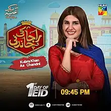 Raja Ki Chandni (English: Raja's Chandni) is a 2019 Pakistani romantic comedy television film aired on Hum TV during August 2019. The film was written by Adam Azeem, developed by Shahzad Javed, Head of Content, HUM TV and Directed by Kamran Akbar Khan. The telefilm is produced by Momina Duraid under MD Productions. It features Kubra Khan and Mohsin Abbas Haider in leads while Behroze Sabzwari, Khalid Anam and Mariam Mirza in supporting roles.[1][2][3]