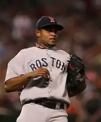 On November 19, Ramírez was traded to the Boston Red Sox for outfielder Coco Crisp.[34] On April 24, 2009, he pitched a scoreless inning for the Red Sox and earned the win in an 11-inning 54 victory over the New York Yankees.[35] He began his Red Sox tenure with 15 straight scoreless innings spanning 13 games from April 8 to May 3.[36] On May 14, he pitched a season-high 2+23 innings, giving up no runs in a 12-inning, 54 loss to the Los Angeles Angels of Anaheim.[37] He struck out a season-high four batters and allowed a run in 1+23 innings on July 9 in an 86 loss to the Royals.[38] Ramírez finished the season with a 74 record, a 2.84 ERA, 52 strikeouts, and 69+23 innings pitched. His seven wins were tied for third among AL relief pitchers and trailed only Alfredo Aceves (10) and Craig Breslow (8).[36] Ramírez reached the playoffs for the first time in his career, as the Red Sox won the Wild Card. In Game 1 of the American League Division Series (ALDS), he gave up two runs without recording an out in his only playoff appearance, a 50 loss to the Angels.[39] The Angels went on to sweep the Red Sox in three games.[40]