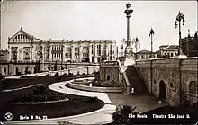 The project chosen was created by Joseph Antoine Bouvard, who planned to build a garden area that would extend from Líbero Badaró to Conselheiro Crispiniano and include the area around the theater. After the landscaping of the area on the slope of Morro do Chá, later named Ramos de Azevedo Square, the site, with curved boulevards and exquisite landscaping, became a form of anteroom for the theater, creating a space that enhanced one of the city's most important artistic spaces.[5]