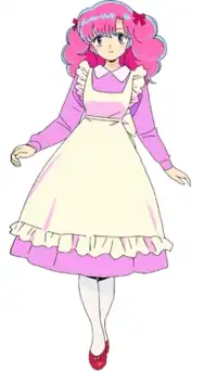 In addition to the manga series, Ran was also featured in its 1981 anime television series adaptation, in which she was voiced by Yō Inoue unitl episode 103,[15] with Kazue Komiya succeeding Inoue as Ran's voice actress for the remainder of the anime.[16] Additionally, the outfit Ran wears in the penultimate opening of the original series was based on that of the character Maris from Takahashi's one-shot manga Maris the Chojo (1980).[3] The character also made an appearance in the animated theatrical film Urusei Yatsura: Remember My Love (1985).[17] In the 1988 "Raging Sherbet" OVA, Ran, along with Lum and Benten, decide to temporarily leave Earth in order to take a summer vacation with Oyuki to her home planet Neptune, where they learn about its native bird species Sherbet, which produce icy treats on demand.[18] In the 2005 "Catch the Heart" OVA, Ran receives a heart-shaped candy from a mischievous spirit that causes a magical heart to appear over the head of whoever eats it.[19] Hanazawa currently voices the character in the 2022 anime television series adaptation of Urusei Yatsura.[20][21]