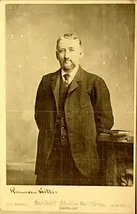 Ransom Gillis was born on December 20, 1838, in Washington County, New York, to Alexander Ransom and Jane (Wilson). Ransom, one of eight children, attended public schools and the Argyle Academy. He relocated to Detroit in 1864 and found work at the Allen-Sheldon Dry Goods Company. He worked there until 1872, when he founded Edson, Moore & Company[23] with colleagues James L. Edson and George F. Moore. Gillis operated as the "buyer of the house". Edson, Moore, & Company ultimately grew to span 194 through 204 Jefferson Avenue, with an area of 125 x 120 feet. They featured wholesale dry goods such as Irish and Scottish linens, hosiery and gloves from Saxony, goods from Europe, and goods from American mills.[24] In December 1893, the massive store on Jefferson was gutted by a fire that was estimated to do $750,000 in damage. Seven employees died in the fire, including two who were forced to jump from the fifth floor of the burning building.[25] In November 1913, the firm relocated to a storefront at 494-514 Fort Street in Detroit. They advertised the new location as being at the north-east corner of Fort Street and M.C.R.R. (Michigan Central Rail Road).[26]