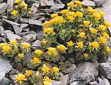 Ranunculus acraeus is specific to high alpine environments. It grows in stable, coarse rock fields of non-foliated schist and greywacke. The rocks have been fractured into coarse and angular rocks of different sizes and shapes. The rocks are about 10–30 cm in diameter.[2][4] They are found on boulder fields of mountains with an upward height of 1500 meters.[1] These buttercups do not grow well at lower altitudes and will die.[3]