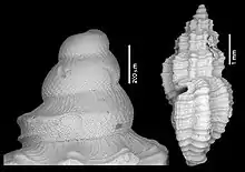 Shell and protoconch of Raphitoma arenosa (holotype at MNHN, Paris)