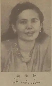 Rashida (Chinese: 拉希達, 1912 – 26 March 1990) was a Uyghur Chinese politician. She was one of the first group of women elected to the Legislative Yuan of the Republic of China in 1948.