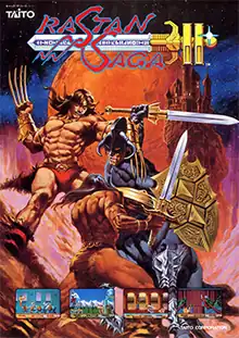 Rastan Saga II,[lower-alpha 1] known in Europe as Nastar and in North America as Nastar Warrior (except for the North American Sega Genesis version, which was released as Rastan Saga II), is a hack and slash platform arcade video game developed and released by Taito in 1988. It is the sequel to Rastan (released as Rastan Saga in Japan). The story in this game tells how Rastan got his titular name (meaning his real name is unknown) and saved a vast region called 'Rastania' from evil monsters known as "The Wicked Group". Rastania which Rastan saves in this game subsequently becomes a kingdom for Rastan to rule.