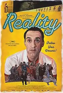 Reality is a 2012 Italian drama film directed by Matteo Garrone and stars Aniello Arena, Loredana Simioli, and Claudia Gerini. The narrative is set in the world of reality television, and follows a Neapolitan fishmonger who participates in Grande Fratello, the Italian version of Big Brother.[1] The film won the Grand Prix award at the 2012 Cannes Film Festival.[2][3][4]