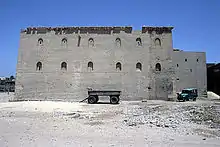 The Red Monastery (Arabic: الدير الاحمر) or The Monastery of Apa Psoi (Coptic: ⲡⲙⲟⲛⲁⲥⲧⲏⲣⲓⲟⲛ ⲛ̀ⲧⲉ ⲁⲡⲁ ⲡⲯⲟⲓ)[1] is a Coptic Orthodox monastery named after an Egyptian saint called Psoi (Coptic: ⲯⲟⲓ) or Pishoy (Coptic: ⲡⲓϣⲱⲓ) (who is not to be confused with the famous Saint Pishoy). It is located near the Upper Egyptian city of Souhag, and about two and a half miles (4.0 km) north-west of the White Monastery. The name of the monastery is derived from the colour of the construction material of its outside walls, consisting of red (burnt) brick. These walls are considerably thicker at the base than at the top, and, just like the walls of Ancient Egyptian temples, they are surmounted by cavetto moldings. The Red Monastery is architecturally similar to the White Monastery.
