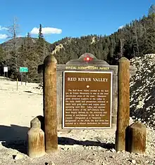 The town of Red River had its beginnings late in the 19th century, when miners from nearby Elizabethtown in the Moreno Valley were drawn in by gold strikes in the area and trappers sought game. It was named after the perennial stream, Red River, that flows through the town, coming from the northern slopes of Wheeler Peak. By 1895, Red River was a booming mining camp, with gold, silver and copper in some abundance, and a population estimated at three thousand. Mining hit its peak in 1897, and by 1905 the mining and the population dwindled but the town survived, gaining a reputation as a great getaway from hot weather and as a trout fishing paradise. The last serious mining efforts extended until 1931. By that time tourism had become the principal economic livelihood.[3]