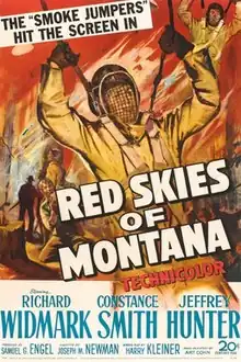 Red Skies of Montana is a 1952 American adventure drama film directed by Joseph M. Newman and starring Richard Widmark, Constance Smith and Jeffrey Hunter. Widmark stars as a smokejumper who attempts to save his crew while being overrun by a forest fire, not only to preserve their lives, but to redeem himself after being the only survivor of a previous disaster.