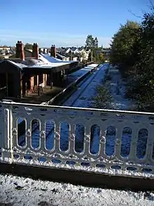 - ↑ Butt, R. V. J. (October 1995). The Directory of Railway Stations: details every public and private passenger station, halt, platform and stopping place, past and present (1st ed.). Sparkford: Patrick Stephens Ltd. p. 196. ISBN 978-1-85260-508-7. OCLC 60251199. OL 11956311M.