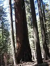 Redwood Mountain Grove is the largest grove of giant sequoia (Sequoiadendron giganteum) trees on earth.[1] It is located in Kings Canyon National Park and Giant Sequoia National Monument on the western slope of California's Sierra Nevada. The grove contains the world's tallest giant sequoia (95 metres (312 ft)).[2] The Hart Tree and Roosevelt Tree grow in the grove and are two of the 25 largest trees by volume in the world. The largest tree is the General Sherman Tree in the Giant Forest grove to the southeast.