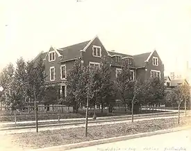 At the southern periphery of Germantown is an Anglo-Saxon-Celtic neighbourhood. St Matthew's Anglican Church remains on 14th Avenue and Winnipeg Street;[45] Carmichael United Church on 13th Avenue immediately adjacent to Regina General Hospital, built in 1920 as Carmichael Presbyterian and later together with the neighboring Wesley Methodist Church becoming a congregation of United Church,[46] closed in 1996. Its Sunday morning services were broadcast on radio and widely listened to by farm families after the United Church closed its rural churches in the early 1950s. Its chancel furniture was acquired by the University of Regina for use at convocation ceremonies,[47] a little-noted historic link with the university's origins as a Methodist and after June 1925 United Church denominational college.