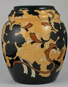 A vase in the "Chryso" pattern, circa 1925, manufactured by Kunstaardewerkfabriek Regina of Gouda, Holland.