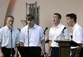 Locked-In, a male quartet consisting of Aaron Wolfe, Sam Peters, Kyle Seyer and Steve Bye, got its start at Regis.