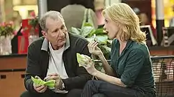 ![]() Claire (Julie Bowen) talking to Jay (Ed O'Neill) about her fight with Phil (Ty Burrell) while eating ice-cream at the Mall | |