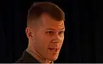 A short crew cut is sometimes referred to as a butch, though with the exception of variant forms, a butch differs from a crew cut in that the top hair is cut a uniform short length.[16] A long crew cut can be referred to in the US as an ivy league crew cut or ivy league.[17][18] A crew cut where the hair on the top of the head is graduated in length from the front hairline to a chosen point on the mid to back part of the crown as a flat plane, of level, upward sloping or downward sloping inclination is known as a flat top crew cut or flattop.[19][20] The crew cut, flat top crew cut, butch cut and Ivy League haircut can be referred to as types of buzz cuts.[21][22] These haircuts have become popular military-inspired styles for men who want a short and low-maintenance look.[23][24][25]