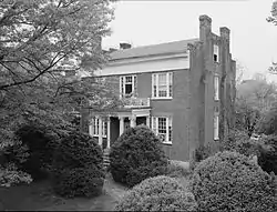 Reid–White–Philbin House, also known as Evergreen House, is a historic home located at Lexington, Virginia. It was built in 1821, and is a two-story, Federal style brick dwelling. It features an early entry porch supported by Ionic order columns A two-story brick addition was made to the left-hand gable end in 1847. The addition has a two-tier front portico and a post-bellum conservatory with bay window. Attached to the rear is a 1+12-story stone kitchen wing dated to the second half of the 18th century. Also on the property is a contributing early- to mid-19th century dependency. It was built for locally prominent businessman, educator, and politician Samuel McDowell Reid.[3]