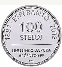 A new silver Esperanto coin for 100 Steloj was struck in 2018 for the 150th birthday of René de Saussure.