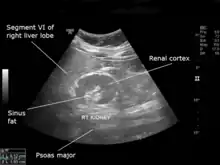 An ultrasound scan of a hypoplastic right kidney in an adult male.