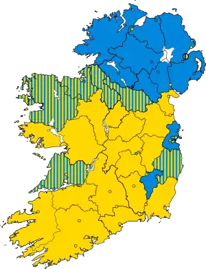 The Act did not alter the overall distribution of parliamentary seats in Ireland.[2] It was originally proposed to merge twelve smaller boroughs into six pairs on the model of Scottish district of burghs and Welsh contributory boroughs, with the freed-up seats being transferred to the six most populous county constituencies. This was rejected by Parliament, although the act as passed did alter the boundaries of those parliamentary boroughs which were also municipal boroughs, extending the parliamentary boundary to include all the municipal boundary.[3]
