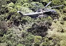 Henderson obtained LORAN fixes on Hambleton's position.[3] Coast Guard Lt. Commander Jay Crowe, an exchange pilot on assignment to the 37th ARRS at Da Nang, was piloting Jolly Green 65. The helicopter broke through the clouds and rapidly dropped into the area where Hambleton was hidden. The aircraft was immediately struck by a wall of North Vietnamese gunfire. Their rounds tore through the aircraft, destroying the instrument panel. Crowe struggled to get the aircraft out of the fire zone, and with his instruments shot up, he had to rely on external visual cues to fly the aircraft.[15]