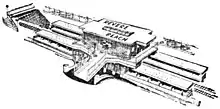 The Eastern Railroad-backed Boston, Winthrop, and Shore Railroad (BW&S) operated slightly inland in 1884 and 1885, with its own Crescent Beach station just west of the BRB&L station.[7][8] A new BRB&L station was opened on October 31, 1887. It was located at Centennial Street, about 500 feet (150 m) south of the previous location.[9] It was very similar in design to Chatham station – which opened the same year – with a polygonal tower on the track side of the building.[10]