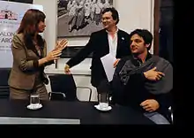 President Cristina Fernández de Kirchner with Tristán Bauer and Rodrigo de la Serna in the official presentation of the film