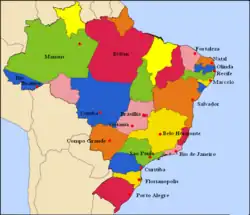 Modern map of Brazil showing the locations of Rio de Janeiro, Salvador, and São Paulo.