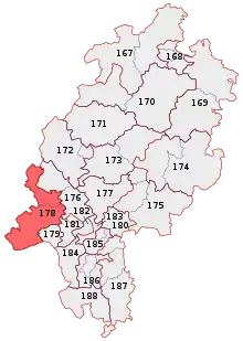 Rheingau-Taunus – Limburg is an electoral constituency (German: Wahlkreis) represented in the Bundestag. It elects one member via first-past-the-post voting. Under the current constituency numbering system, it is designated as constituency 178. It is located in southwestern Hesse, comprising the Rheingau-Taunus-Kreis district and the southwestern part of the Limburg-Weilburg district.[1]