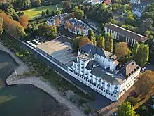 [Replacement accommodations had to be found on short notice for the 363 refugees and displaced persons who occupied the complex in the summer of 1949. Almost half of them were accommodated by the state of Rhineland-Palatinate in the Rheinhotel Niederbreisig, at least temporarily, until the replacement apartments begun in Godesberg were completed...] - ↑ Germany; Presse- und Informationsamt (11 March 1954). "Diplomatische und sonstige amtliche ausländische Missionen sowie Vertretungen internationaler Organisationen in der Bundesrepublik Deutschland (Stand: 1. März 1954)" [Diplomatic and other official foreign missions and representations of international organizations in the Federal Republic of Germany (as of 1 March 1954)]. Bulletin des Presse- und Informationsamtes der Bundesregierung|Bulletin des Presse- und Informationsamtes der Bundesregierung. Berlin: Deutscher Bundes-Verlag. p. 382. ISSN 0342-5754. OCLC 1368093722.
