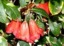 Rhododendron eudoxum (华丽杜鹃) is a species of flowering plant in the Ericaceae family.[2] It is native to the bamboo forests of southeast Xizang and northwest Yunnan, China, where it grows at altitudes of 3300–4300 meters. It is a dwarf shrub that typically grows to 0.3–1.2 m in height, with leathery leaves that are long-elliptic to oblong-obovate in shape, and 2.3–3 × 0.8–1.4 cm in size. Flowers are red.
