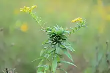Rhopalomyia solidaginis, the goldenrod bunch gall, is a species of gall midges, insects in the family Cecidomyiidae The galls of this species have the following host species of goldenrods:Solidago altissima, Solidago canadensis, Solidago rugosa They have been found across eastern North American.