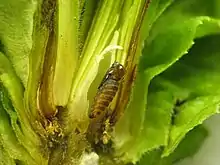 Rhopalomyia solidaginis pupa in bunch gall in Solidago